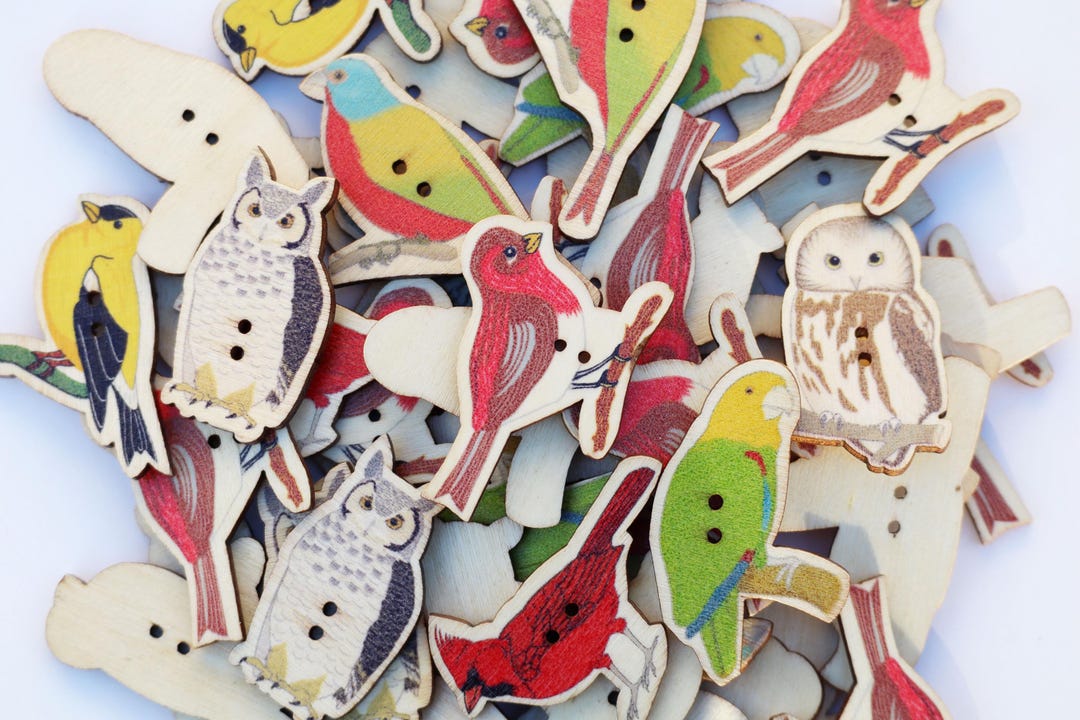 50pcs Mixed Multicolor Birds Sewing Buttons. Etsy